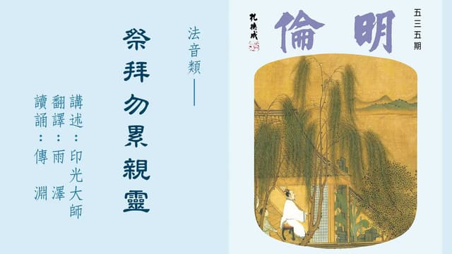 ![]() 不要在五欲上求满愿 2024-5-13 | ![]() 两个死后还阳的故事 2024-5-13 | ![]() 念佛发音不准怎么办 2024-5-9 |